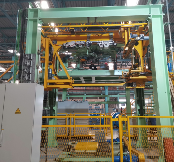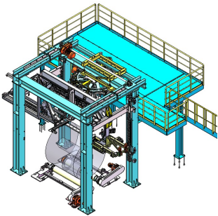 完成冷軋鋼卷的穿心纏繞包裝,可自動完成紙、膜複合包裝或單獨的膜包裝。