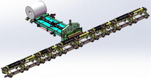·系統根據相關信息選擇相應的外護闆材料,由剪切夾送設備将包裝材料運送至輸送設備,再由輸送設備完成對中、輸送并逐漸滾壓成型。包裝材料的前端和後端分别被噴上熱熔膠已保證材料的固定不松散。