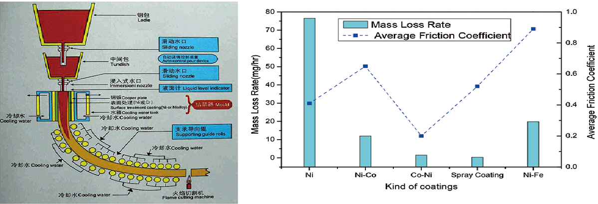 連鑄機組中的結晶器是一個強制水冷的無底鋼錠模,通常被稱爲連鑄設備的“心髒”,其主要作用是使鋼液逐漸凝固成所需要規格和形狀的坯殼并保證坯殼均勻穩定的連續生成。結晶器銅闆就是這一“心髒”裏的核心部件,由于銅闆表面與鋼液直接接觸,且當鋼液凝固成坯殼後與銅闆表面的摩擦加劇,再加上要受到保護渣的侵蝕,因此要求銅闆表面具有良好抗熱裂等性能。泰爾表面所研制的結晶器銅闆,是采用先進的超音速火焰噴塗技術制備的耐腐蝕的塗層,其主要成分是高溫合金或高溫合金+陶瓷等材料。塗層材料的優異特性保證了銅闆能在較高的拉速下工作,且一次使用的平均過鋼量顯著提高。實現了用戶設備運行綜合成本的下降和機組産量的提高。