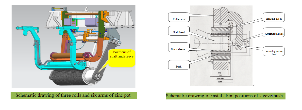 The sleeve and bushing, are the key parts for a cold rolling hot galvanization line, are installed on the heads and arms of the sink roll and the stabilizing roll and used to serve as the drive bearings of these rolls. They must tolerate the challenge from high temperature, corrosion by molten zinc and abrasion. For this reason, traditional products have the disadvantages of a short service life, poor stability and high comprehensive cost. With advanced materials and special process, we have developed the sleeve and bushing series with a broad range of advantages like resistance against high temperature, resistance against abrasion and stable operation. They can effectively help customers improve product quality and reduce the comprehensive cost, thereby satisfying customer demands for different production lines.