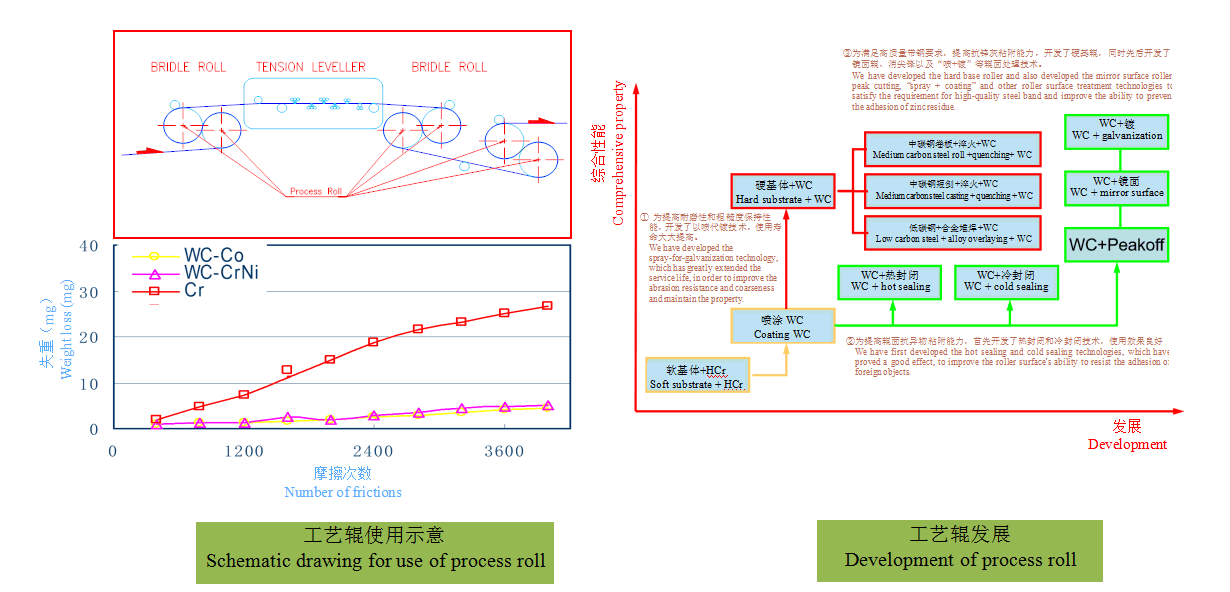 Furnace roll is a core component in cold rolling continuous annealing unit and continuous hot-dip galvanizing unit annealing furnace. Due to long-term service at high temperature, in addition to having excellent heat resistant performance including high strength, strong resistance to high temperature oxidation corrosion, good wear resistance and excellent thermal shock resistance, the furnace roll surface coating must have excellent ability to resist accumulated burl (accumulated burl of Fe for ordinary steel and accumulated burl of Mn for high-strength steel) to ensure the quality of strip steel, long-term roughness retention performance and the establishment of tension in the furnace. Anhui Taier Surface Engineering Technology Co., Ltd. adopts international advanced continuous spraying technology including HVOF and plasma arc, the high temperature superalloy + ceramic coating manufactured has the advantages of long service life and high cost performance, and advanced post treatment equipment and technology can be used to manufacture the furnace rolls of various roll types and different roughness.